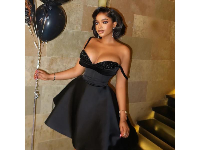 Mini φόρεμα σε μαύρο χρώμα με εντυπωσιακό μπούστο διακοσμημένο με στρας και εφαρμοστό κορσέ που τονίζει τη μέση. Η φούστα σε γραμμή Α προσθέτει όγκο και κίνηση για glamorous εμφανίσεις σε βραδινά events και πάρτι.