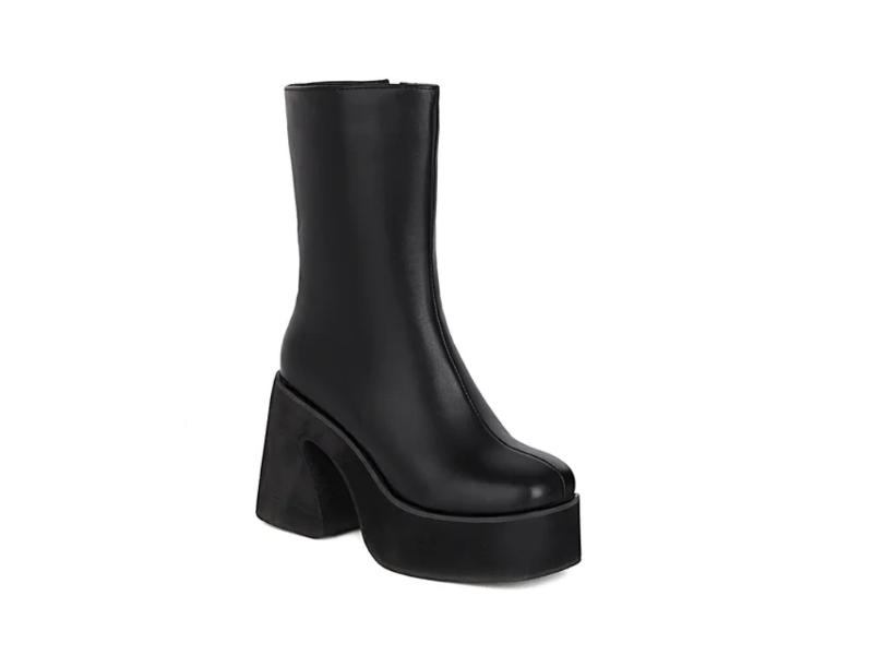 Μαύρη πλατφόρμα μπότα με εντυπωσιακή γραμμή και bold αισθητική Συνδυάζει άνεση και ύψος για εμφανίσεις που ξεχωρίζουν