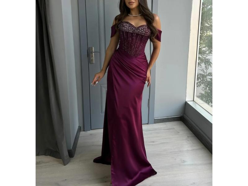 Maxi φόρεμα με στράπλες εφαρμοστό κορσέ διακοσμημένο με strass ντραπέ φούστα που αγκαλιάζει τη σιλουέτα και πολυτελή αίσθηση ιδανικό για επίσημες βραδινές εμφανίσεις και ιδιαίτερες περιστάσεις