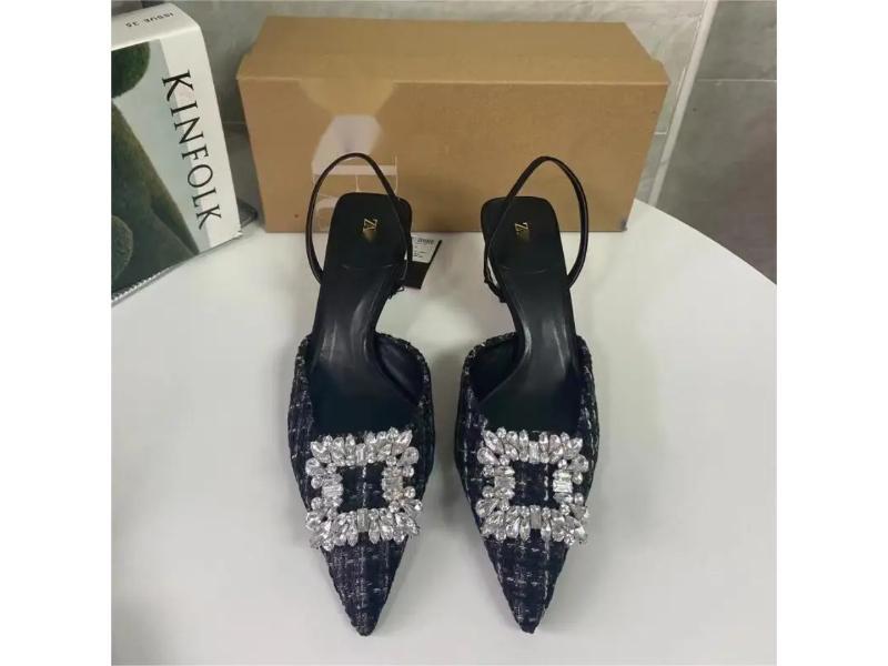 Εντυπωσιακά slingback πέδιλα με μυτερή μύτη και μεγάλο τετράγωνο διακοσμητικό από λαμπερά κρύσταλλα που προσθέτουν πολυτέλεια σε κάθε εμφάνιση