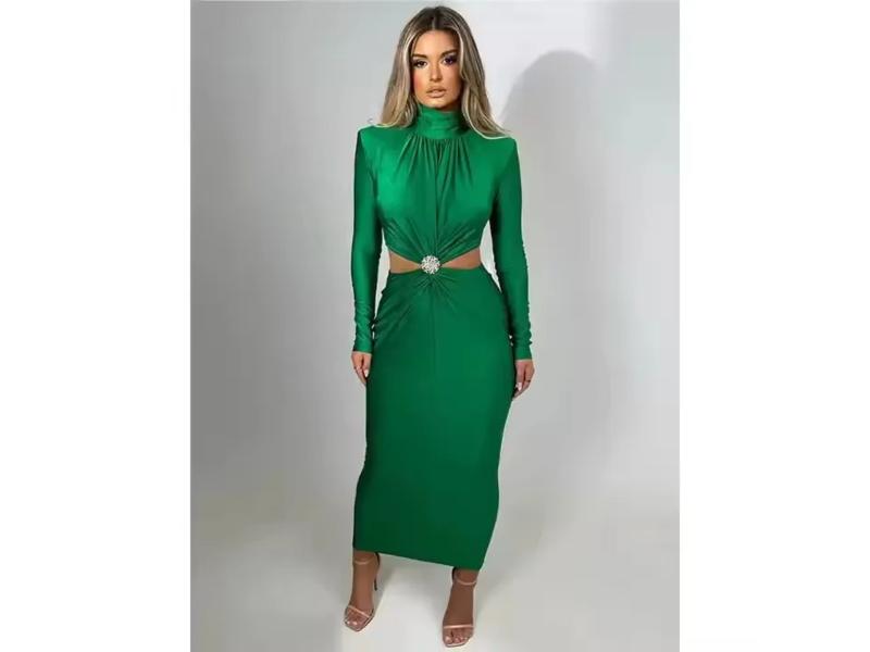 Midi φόρεμα με μακρύ μανίκι, ζιβάγκο και cut-out λεπτομέρειες στη μέση διακοσμημένες με πέτρα που προσθέτει λάμψη και κομψότητα ιδανικό για βραδινές εμφανίσεις.