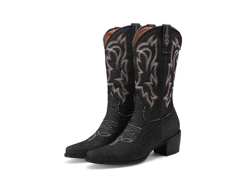 Μπότα τακουνιού western με εντυπωσιακό κέντημα και σταθερό τακούνι που προσφέρει άνεση και στυλ για καθημερινές και statement εμφανίσεις