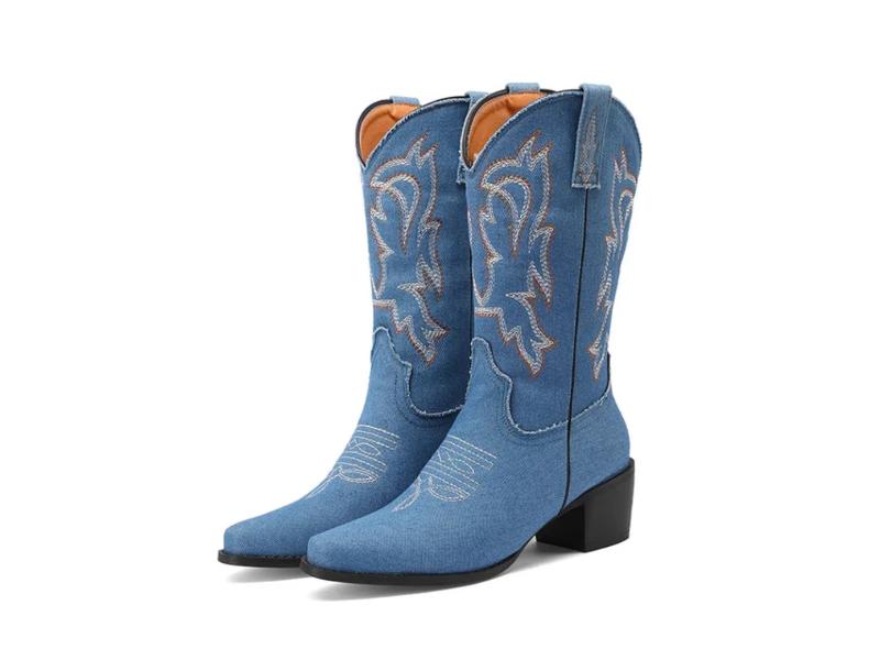 Μπότα τακουνιού western με εντυπωσιακό κέντημα και σταθερό τακούνι που προσφέρει άνεση και στυλ για καθημερινές και statement εμφανίσεις