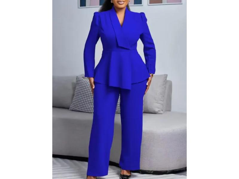 Σετ Κομψό Με Peplum Σακάκι Και Παντελόνα Μπλε Ρουά