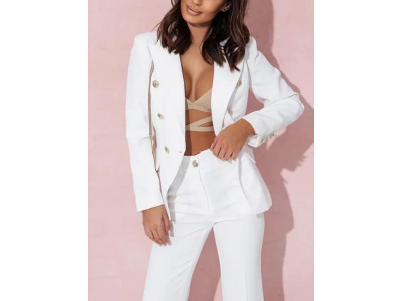 Σετ Κομψό Με Peplum Σακάκι Και Παντελόνα Λευκό