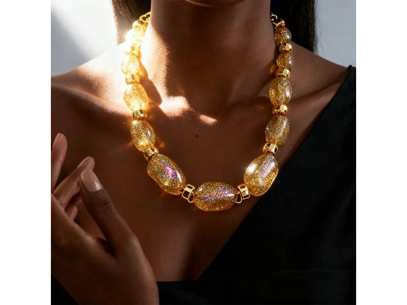 Κολιέ Statement Χρυσό με Μεγάλες Λαμπερές Χάντρες
