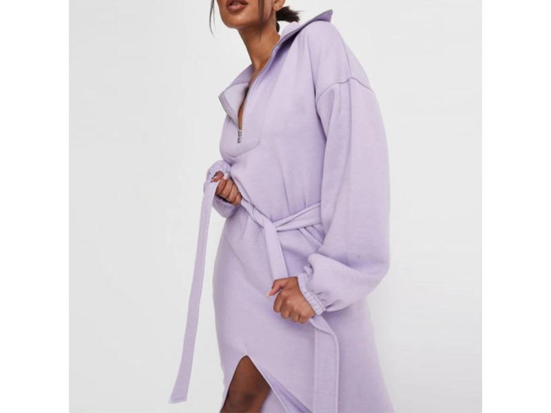 Άνετο maxi φόρεμα φούτερ με κουκούλα και αποσπώμενη ζώνη στη μέση Συνδυάζει casual στυλ με άνεση για εντυπωσιακές εμφανίσεις κάθε μέρα