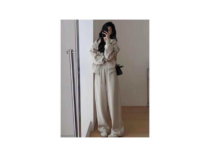 Άνετο lounge σετ από απαλό ύφασμα με ζακέτα σε χαλαρή γραμμή και παντελόνι με ίσια άνετη εφαρμογή που προσφέρει καθημερινή άνεση minimal αισθητική και ευκολία στην κίνηση