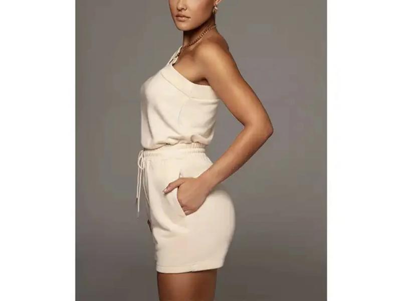 Σετ φόρμας με μακρύ μανίκι στη μία πλευρά και σορτσάκι με κορδόνι στη μέση Απαλό ύφασμα για κομψό και άνετο look στο σπίτι ή τη βόλτα