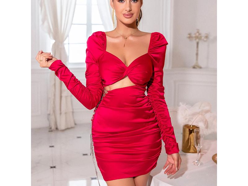 Mini φορεμα με cut out σχεδιασμο εφαρμοστη γραμμη και μακριά μανικια για βραδινες εμφανισεις