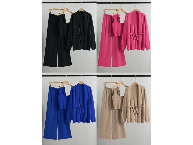 Σετ τριών τεμαχίων με τοπ παντελόνι και ζακέτα με δέσιμο που προσφέρει άνεση κομψότητα και ευέλικτο styling για καθημερινές και πιο προσεγμένες εμφανίσεις