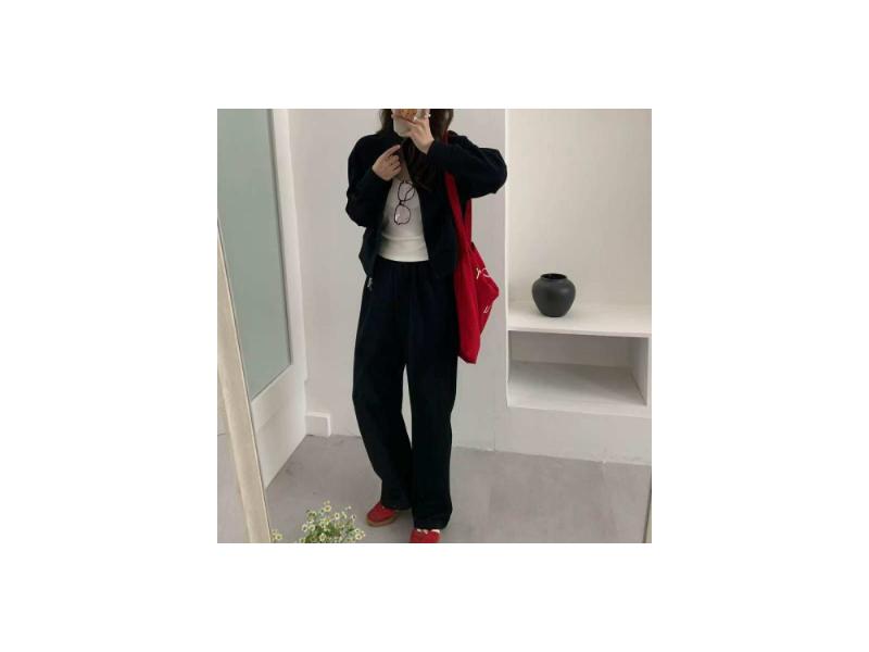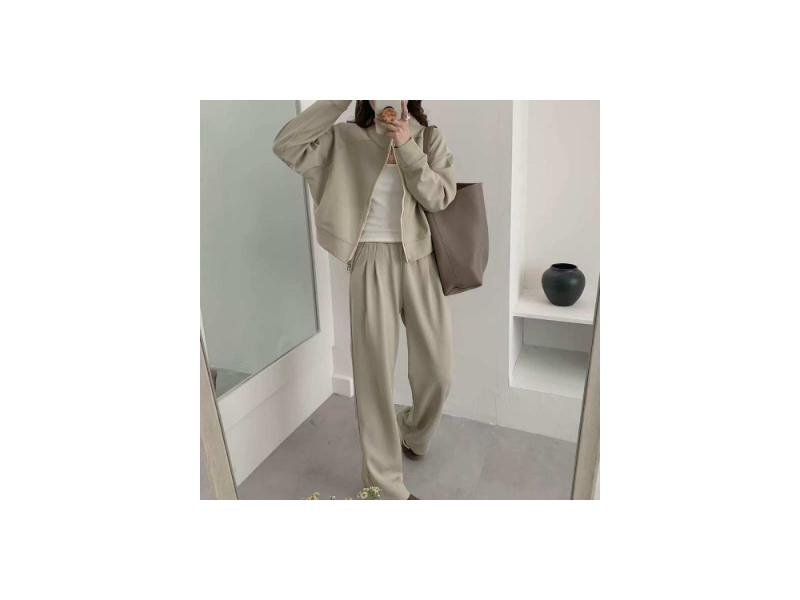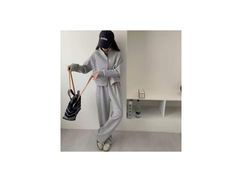 Άνετο lounge σετ από απαλό ύφασμα με ζακέτα με φερμουάρ σε χαλαρή γραμμή και παντελόνι με ίσια εφαρμογή που προσφέρει καθημερινή άνεση πρακτικότητα και minimal αισθητική