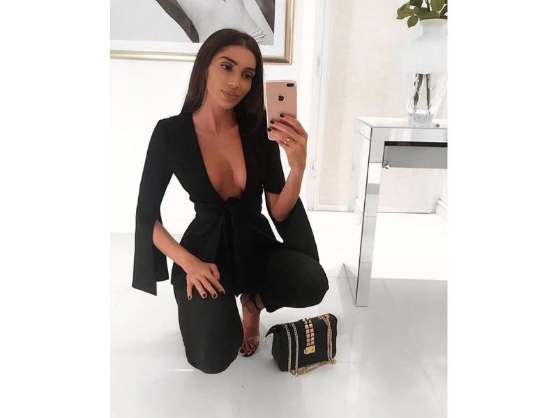 Εντυπωσιακό μαύρο σετ με σακάκι deep plunge δέσιμο στη μέση και εφαρμοστό παντελόνι. Σέξι και κομψό σχέδιο που αποπνέει δυναμισμό και πολυτέλεια ιδανικό για βραδινές εμφανίσεις και εκρηκτικές στιγμές.