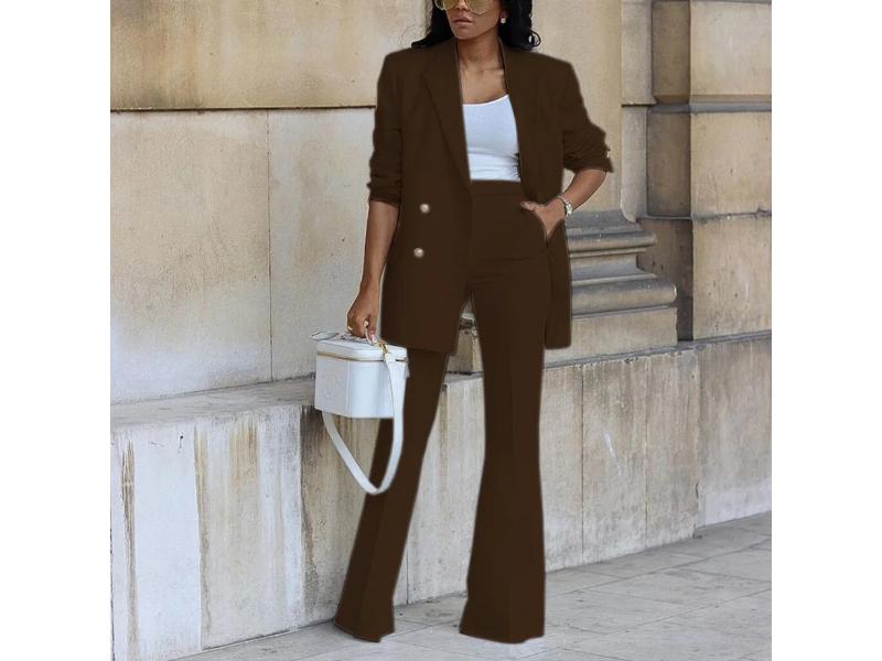 Καφέ Σετ Blazer με Κουμπιά και Παντελόνι Καμπάνα