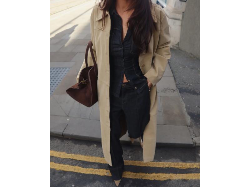 Σύγχρονη denim ολόσωμη φόρμα με φαρδύ πόδι και ραφές που κολακεύουν τη σιλουέτα Διαθέτει κουμπιά μπροστά, τσέπες και εφαρμοστή μέση που προσδίδει θηλυκή γραμμή Ιδανική για casual chic εμφανίσεις με στυλ