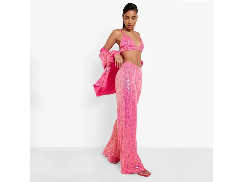 Εντυπωσιακό σετ τριών τεμαχίων bralette παντελόνι και πουκάμισο με πολυτελείς στρας λεπτομέρειες που αντανακλούν το φως. Ιδανικό για glam εμφανίσεις πάρτι και ξεχωριστές βραδιές συνδυάζοντας άνεση και εκρηκτικό στυλ.