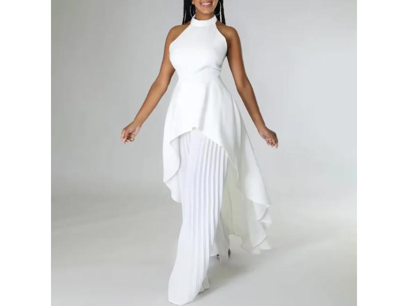 Ασύμμετρη Πλισέ Ολόσωμη Φόρμα Με Layered Σχέδιο White