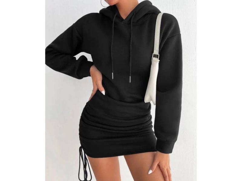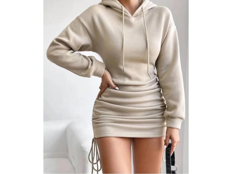 Mini φόρεμα φούτερ με κουκούλα και ρυθμιζόμενο λάστιχο στο πλάι Προσφέρει casual chic εμφάνιση με θηλυκή εφαρμογή για κάθε στιγμή της ημέρας
