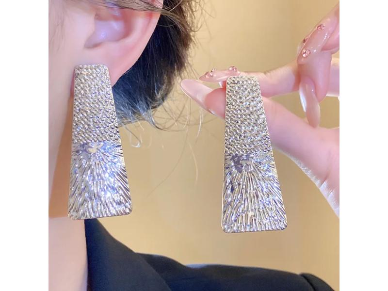 Γεωμετρικά σκουλαρίκια σε ασημί μεταλλικό τόνο με ανάγλυφη υφή που δημιουργεί φωτεινή λάμψη και σύγχρονο glamorous αποτέλεσμα